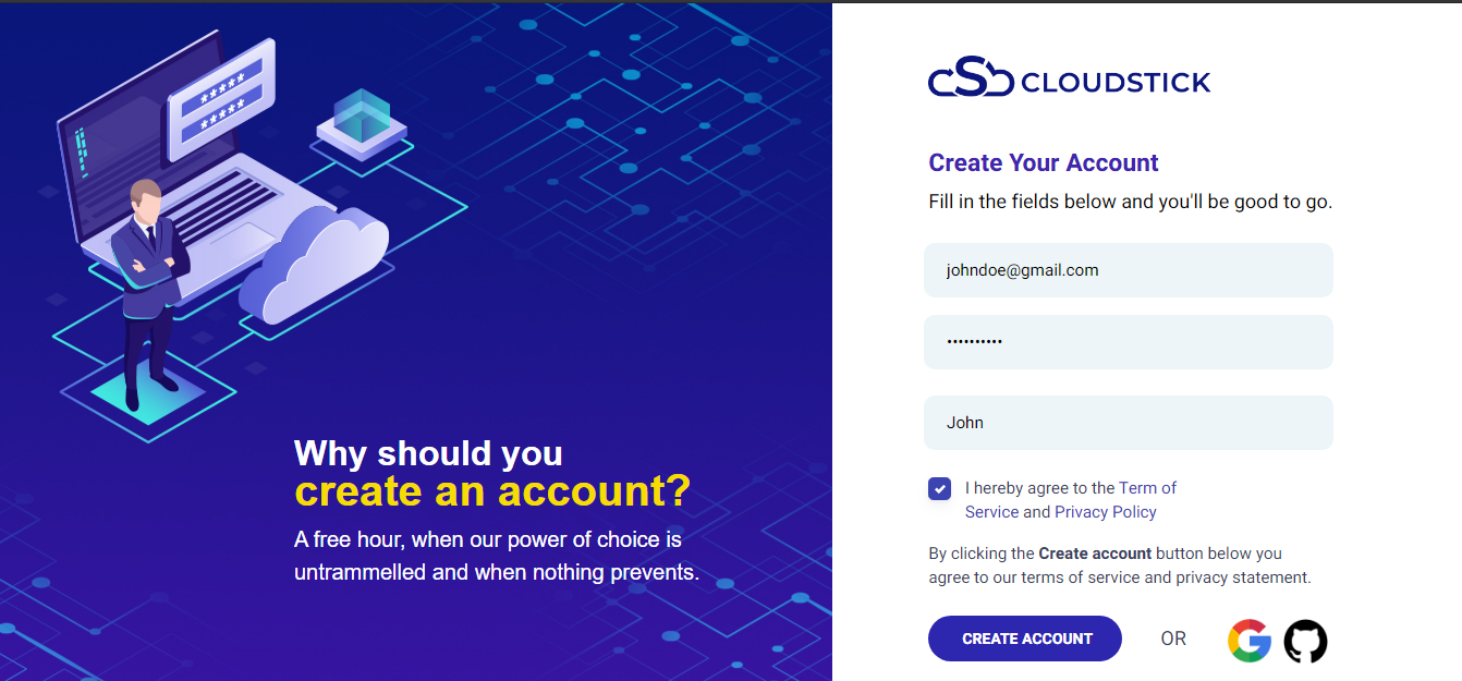•  Log on to www.cloudstick.io and signup your account