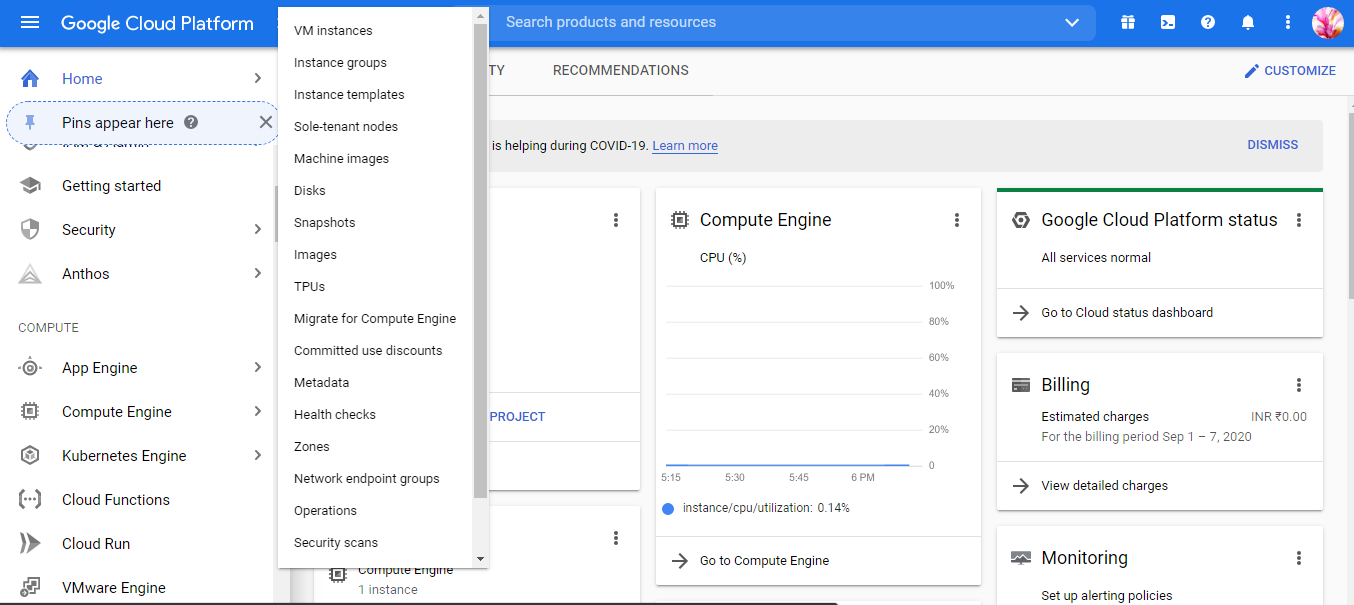 Step3: Goto Compute section on the left side menu and click on Compute Engine