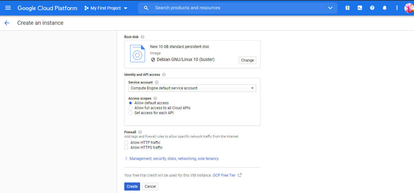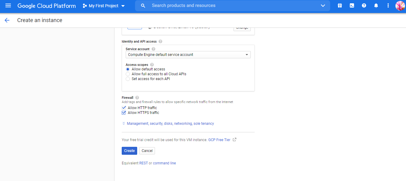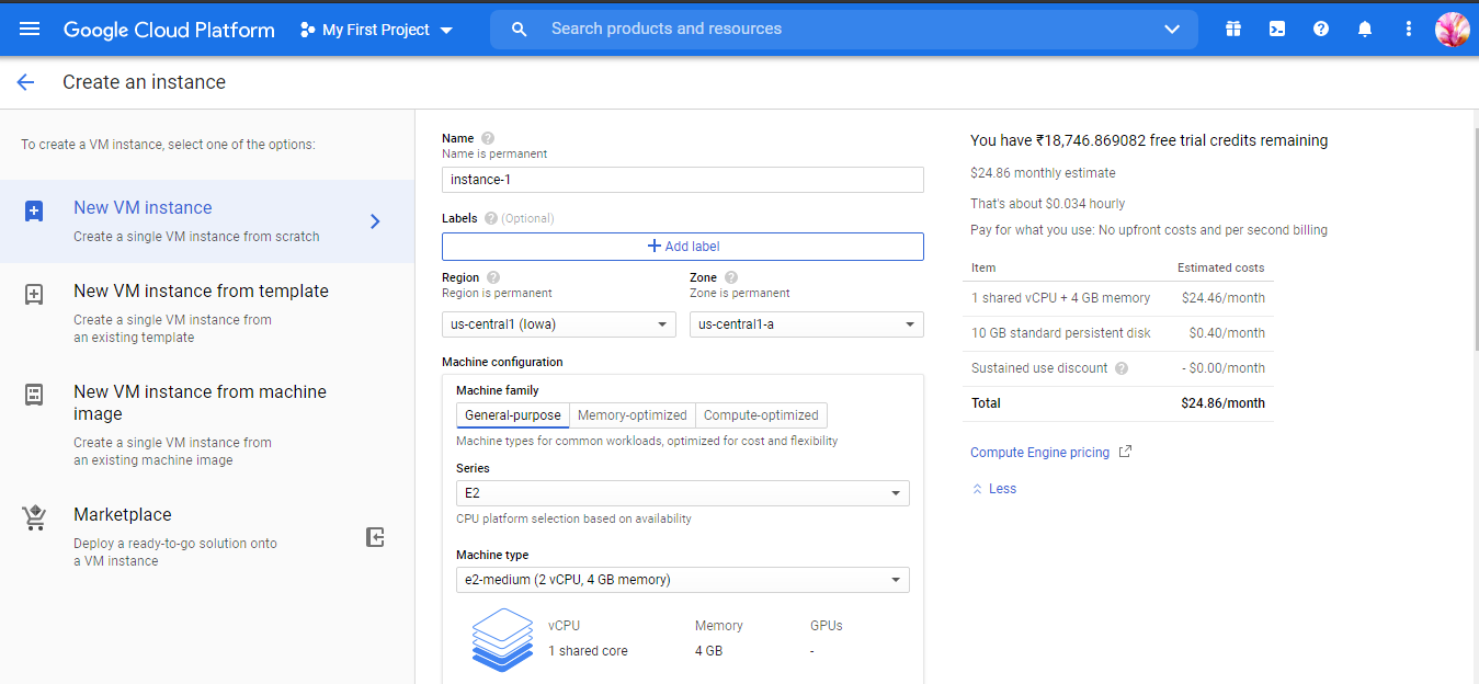 Step 5: Once you are in the process of creating the VM instance according to your requirements,