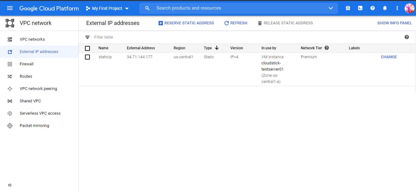 Now we have to assign a static IP address for the created instance