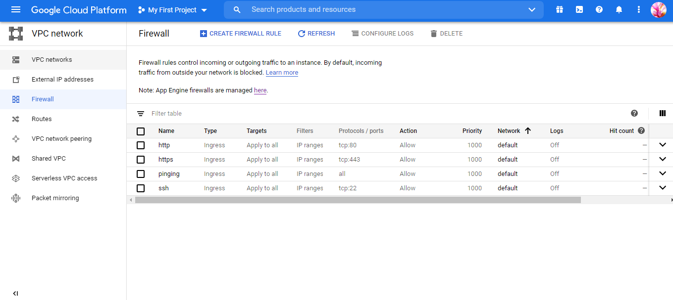Step 10: Once you fix the static IP, the firewall needs to be configured, create a firewall rule, and make sure to open ports 22, 80, and 443.