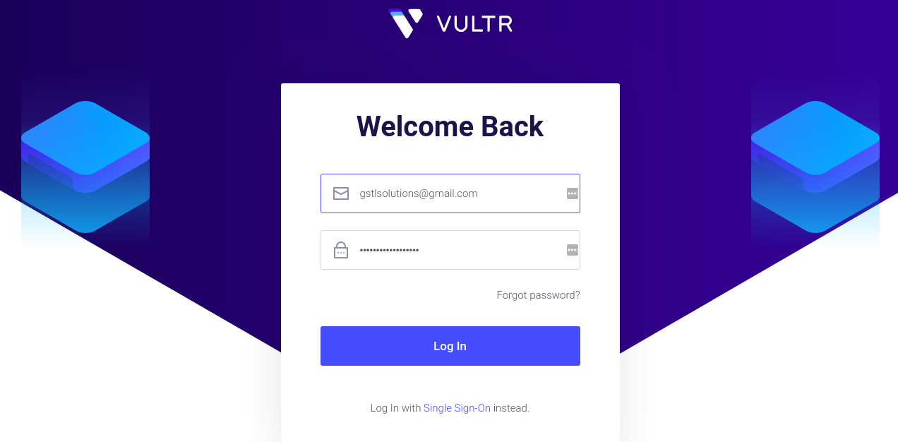 • Log on to vultr.com and create an account and sign in.
