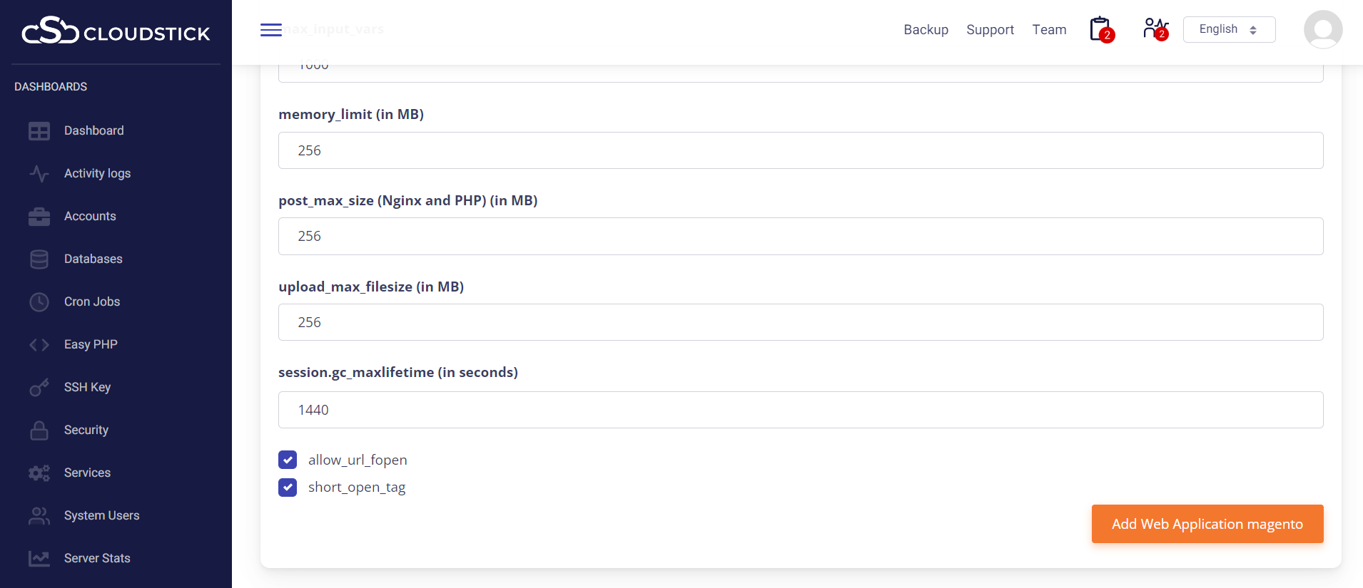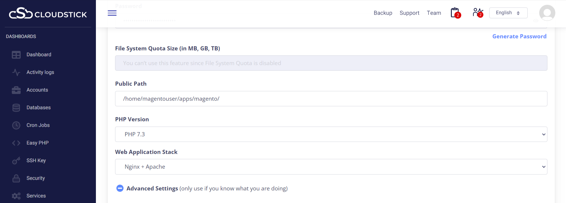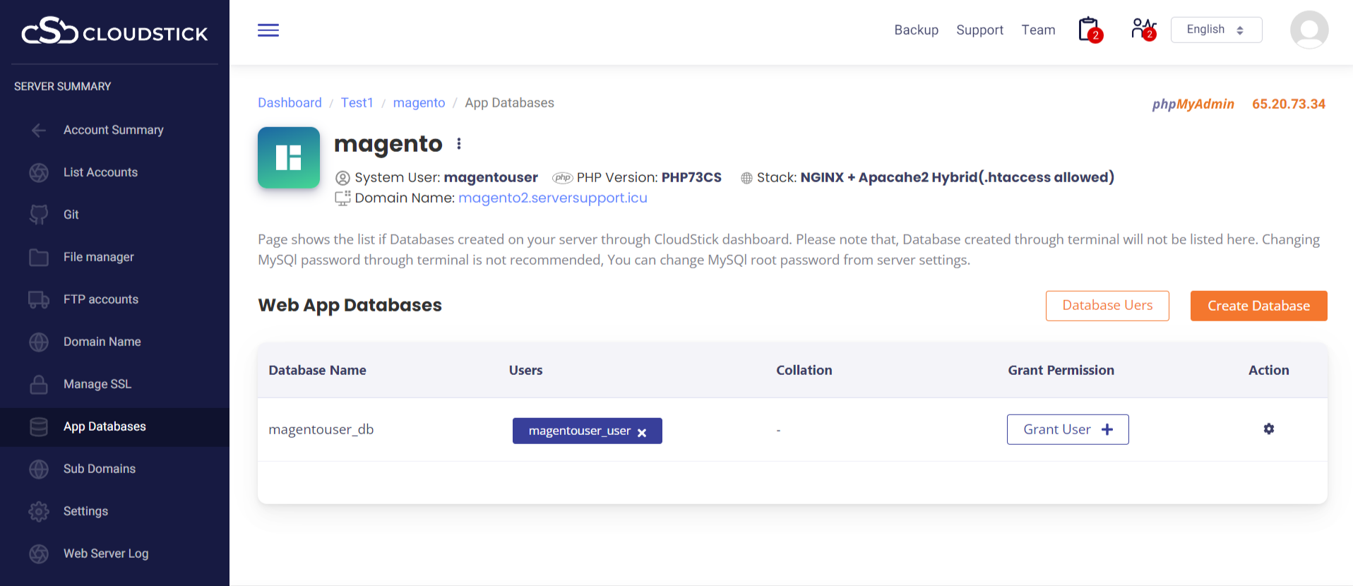 For Magento 2, we need to create a database. You can easily do this from the CloudStick dashboard.