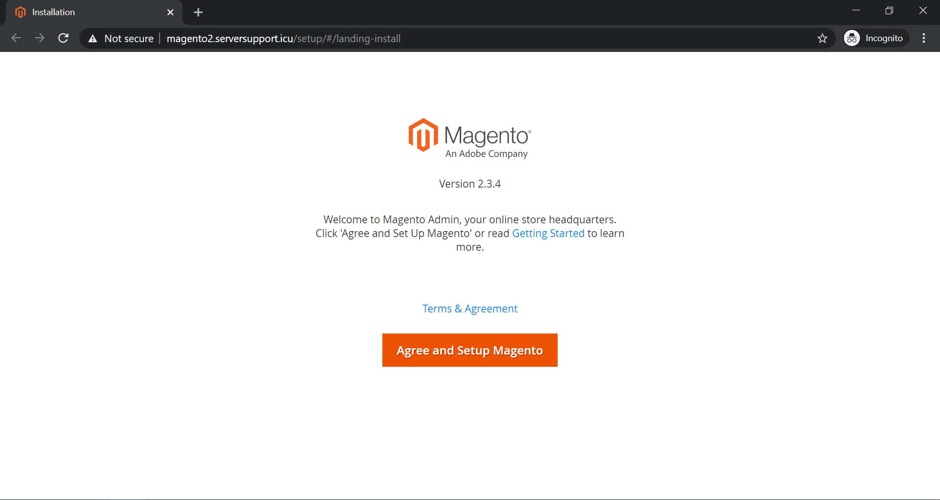You can now open the Magento 2 web application inside your browser with the domain name you have created.