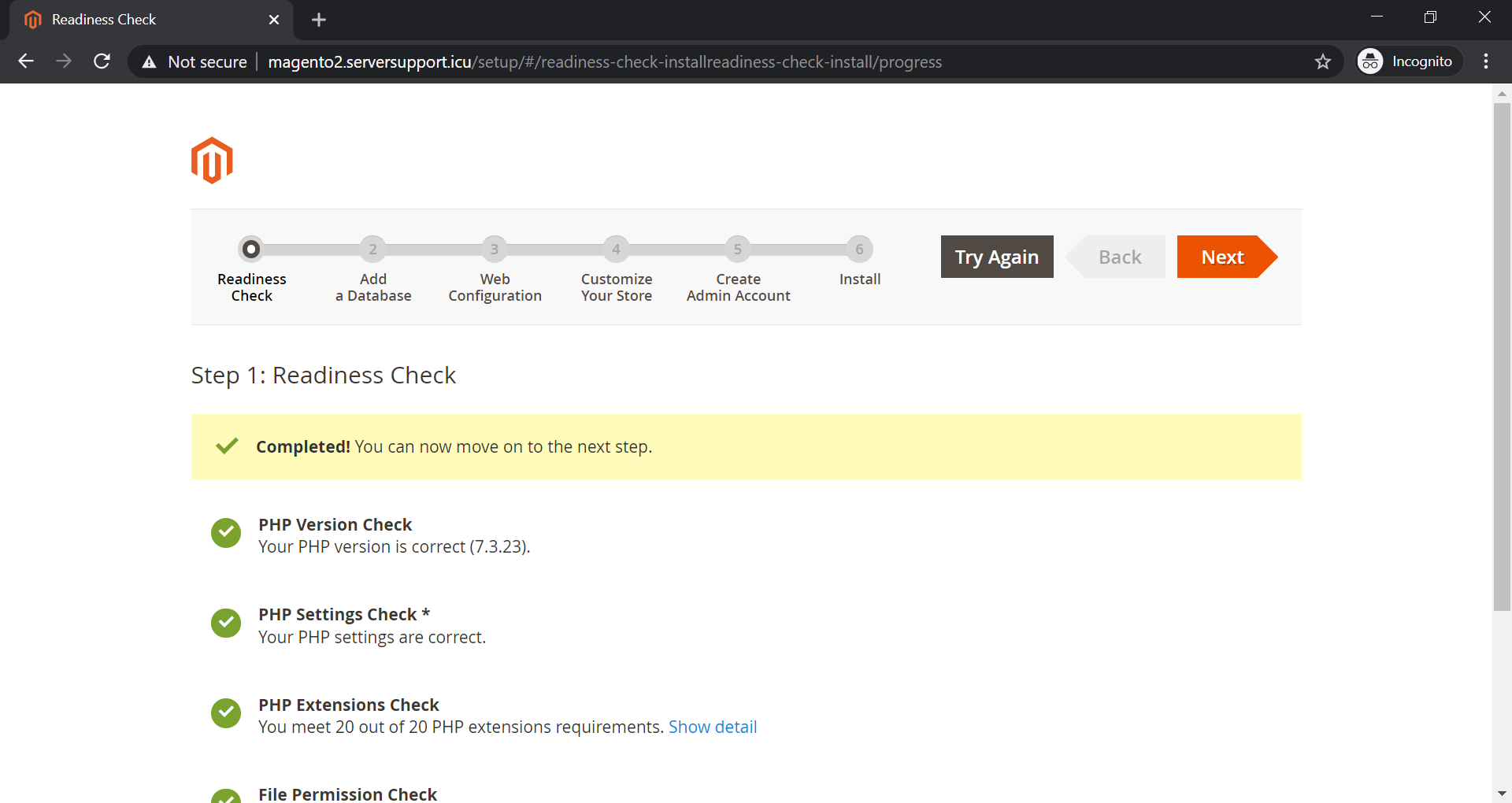 After installation using, how to install Magento 2 in Ubuntu 20.04, you will see a page with a success message like this: