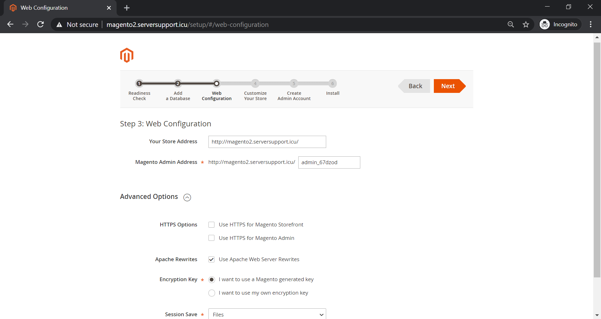 For the ‘Web application name’, here we are using ‘magento’. You can use any name you like.