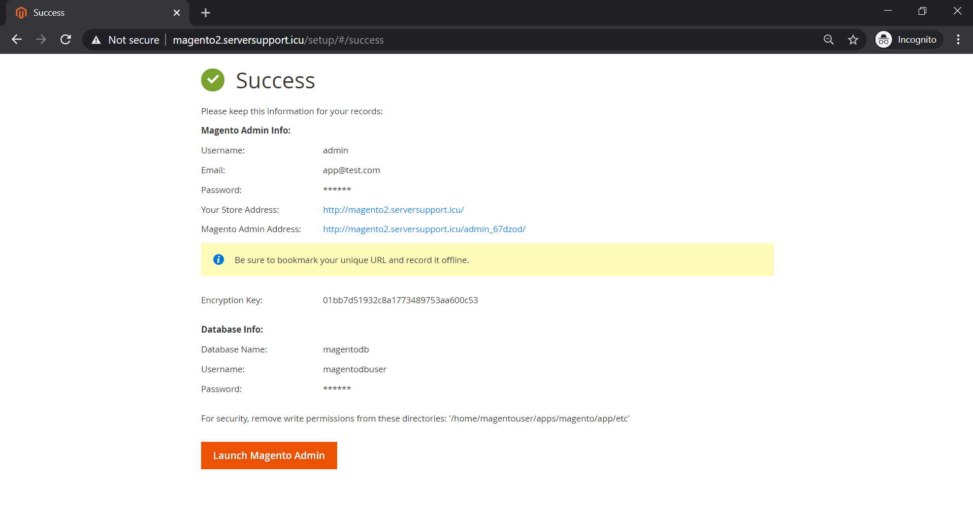 Click on ‘Launch Magento Admin’ to log in to your account.