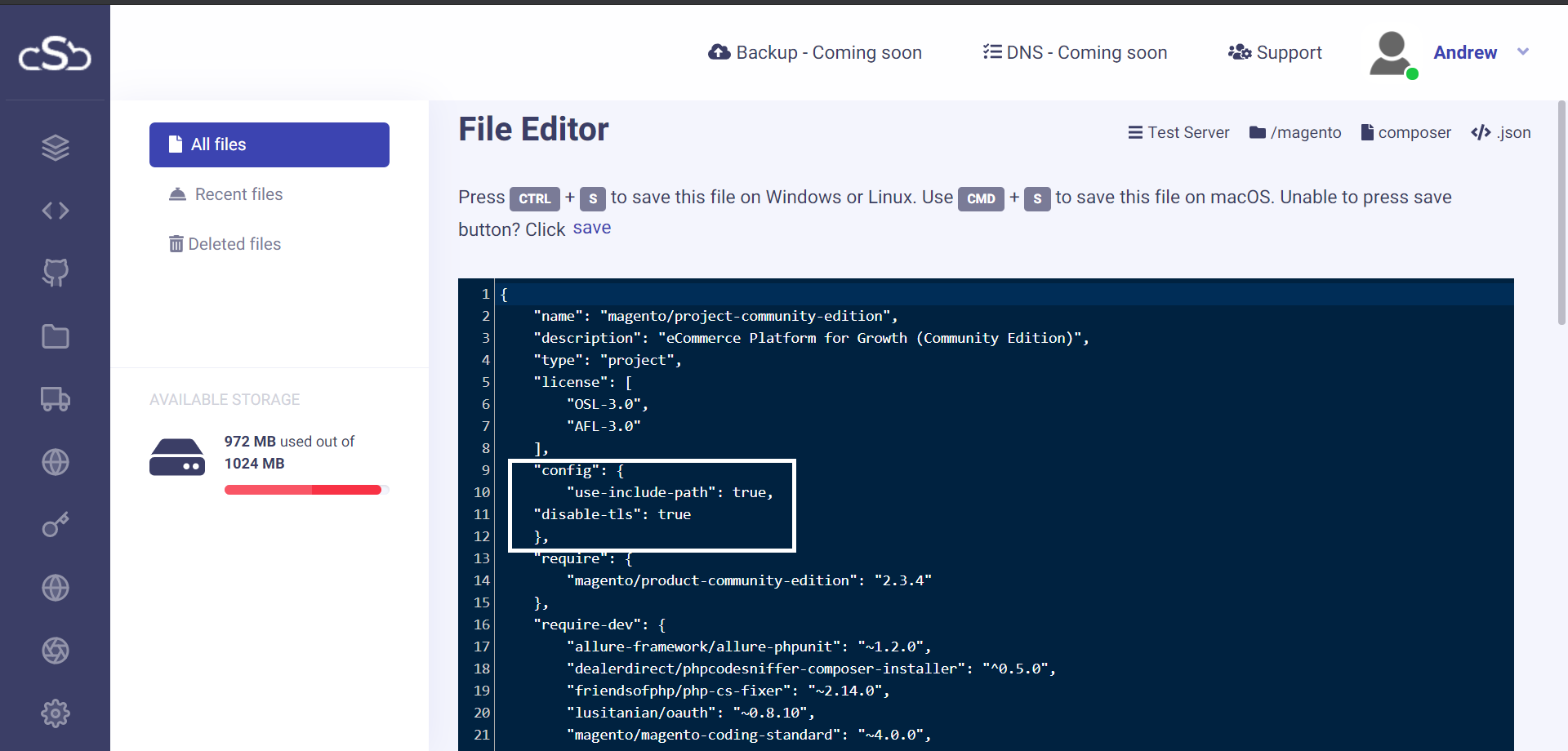 For this, we need to edit the composer.json inside your Magento2 root directory. We can do this from the CloudStick dashboard itself: