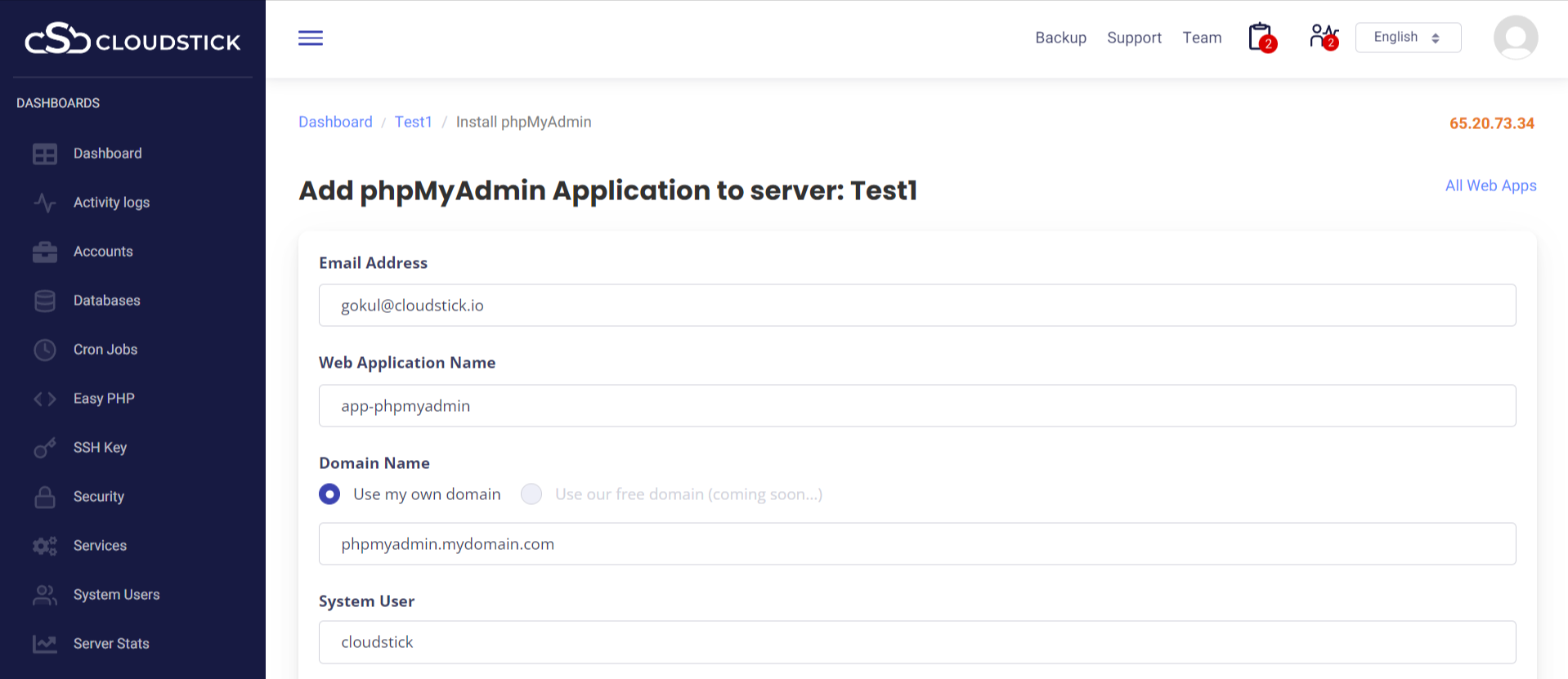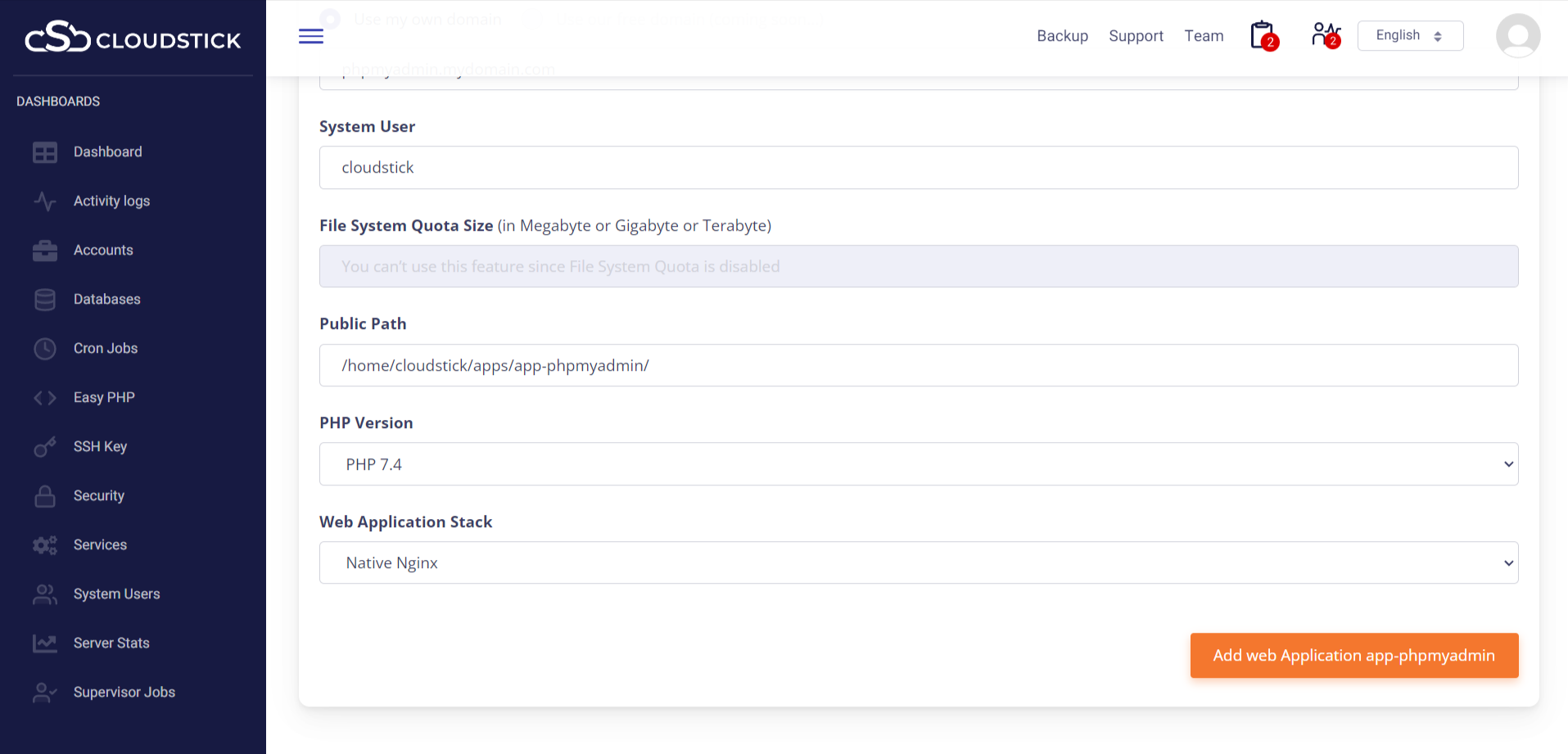 How to install PhpMyAdmin on CloudStick?