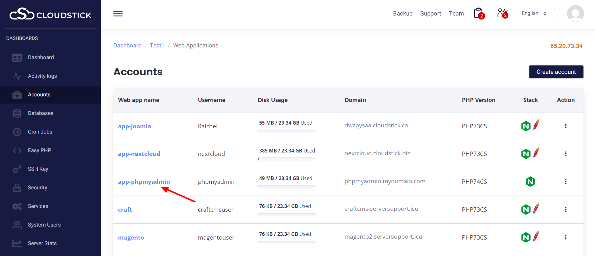 Step1: Login to CloudStick account and select the server: