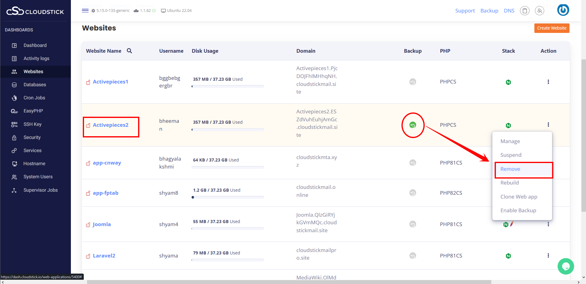 Now to check the Archived backup, delete a website for which Backup is enabled and Backup file is already generated.