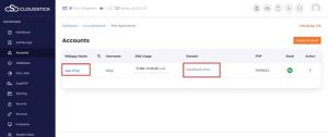 Navigate to the ‘Accounts’ Section: proceed to the ‘Accounts’ section. Which is the left side of the dashboard as you can see in the below image. This area allows you to manage various aspects of your domain and associated services.