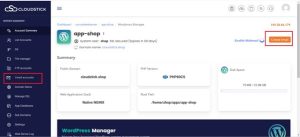 Access the Web Application Settings: Click on the name of the web application associated with your domain. For this example, let’s assume the domain is “CloudStick.shop”. This action will lead you to the settings and options specific to the chosen web application. Here you need to click on the web app name like I am selecting app.shop