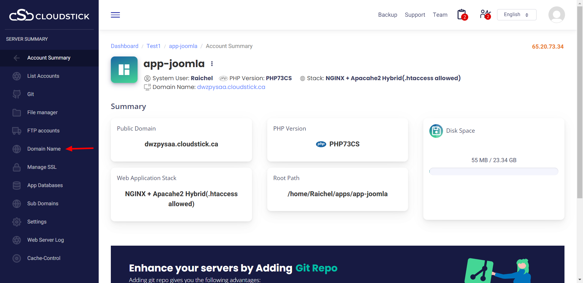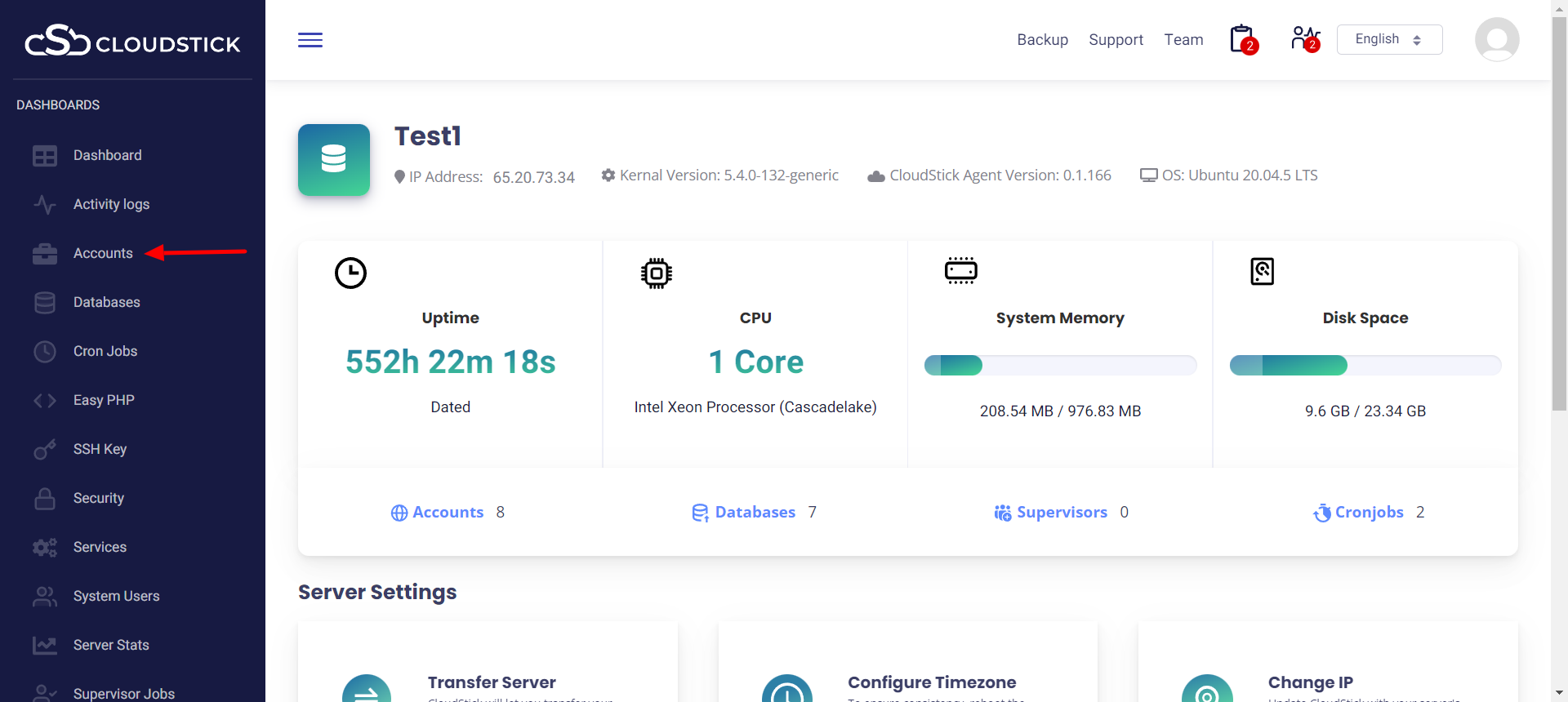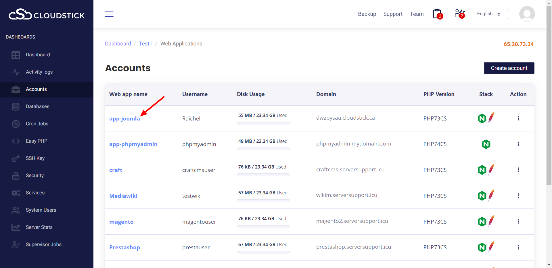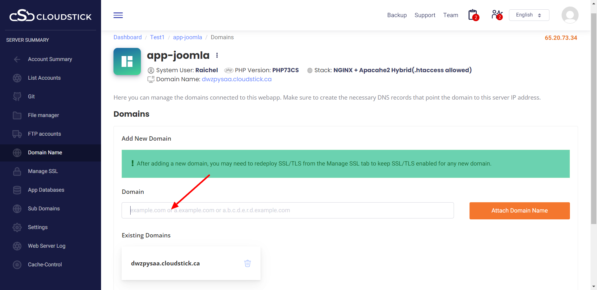 • Remember, you need to create a new account if the primary domain is not hosted on this server. Else you need to navigate to the menu Subdomains from the left-hand side.