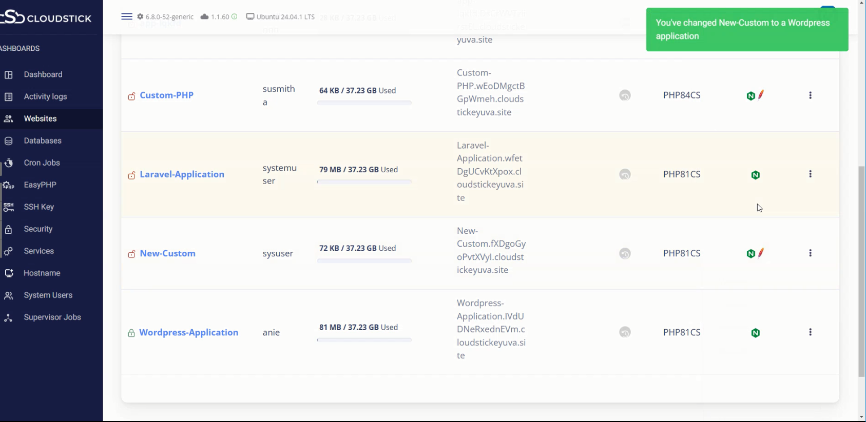 You have successfully converted Custom WebApp to WordPress Application. You will see the success message like above.