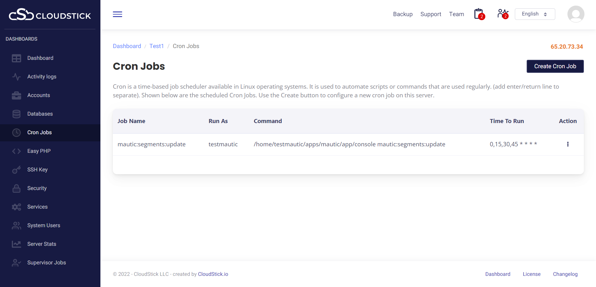 - Finally, click the create cronjob button to save. Cron will run the script automatically at the intervals you selected.