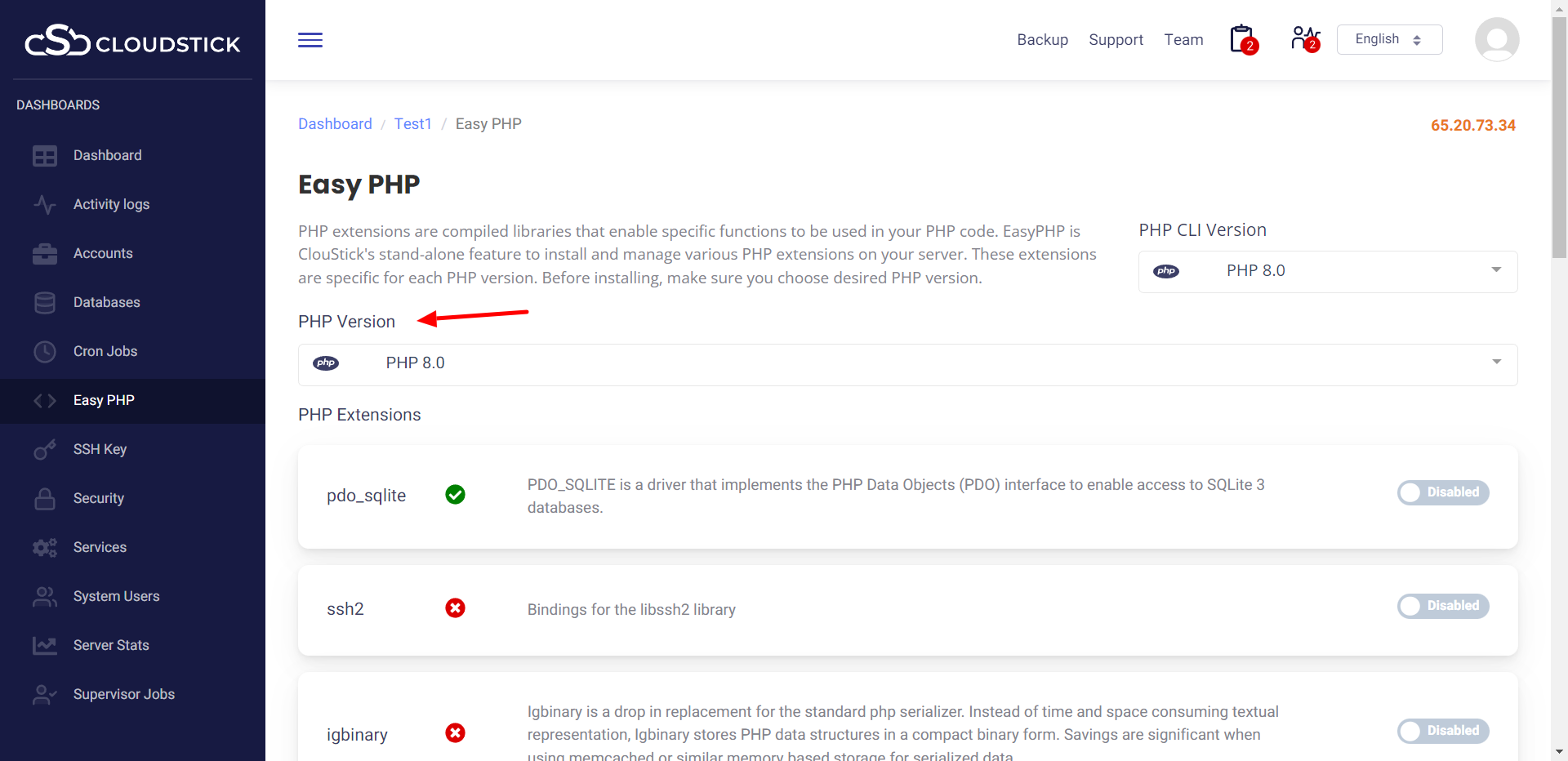 Using easy PHP you can simply enable PHP extensions in single clicks. These extensions are specific for each PHP version. Before installing, make sure you choose the desired PHP version.