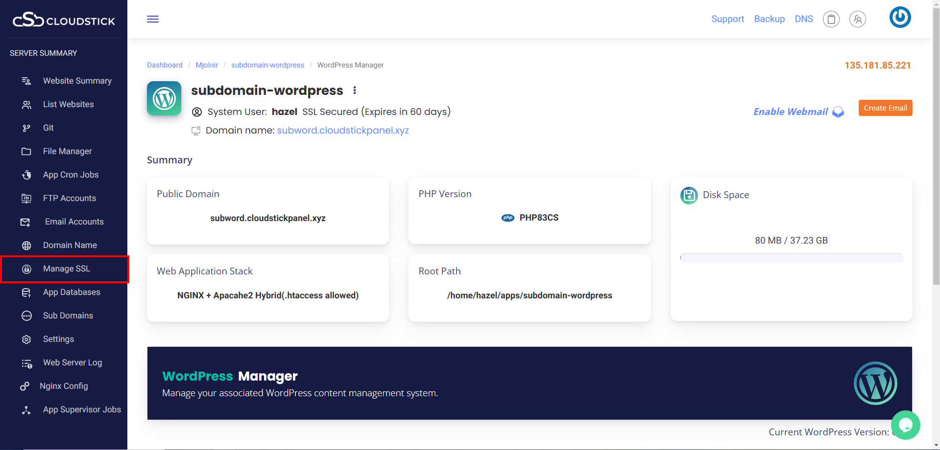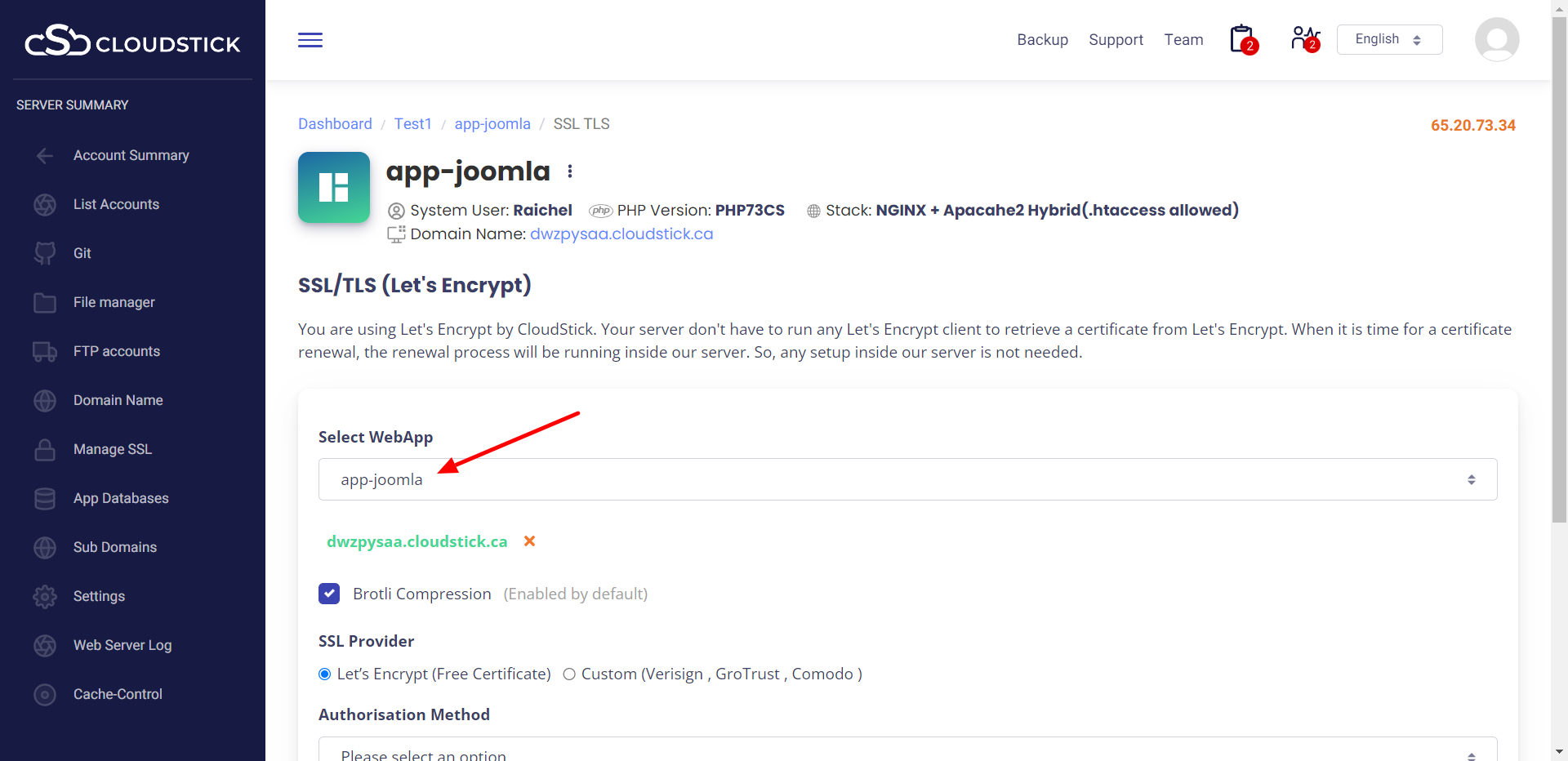 - Select the Sub-domain from the ‘Select Web-App’ drop-down menu.Once you have selected, you can see the subdomain attached to the corresponding web application.