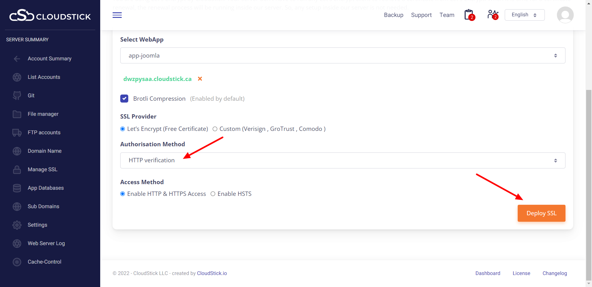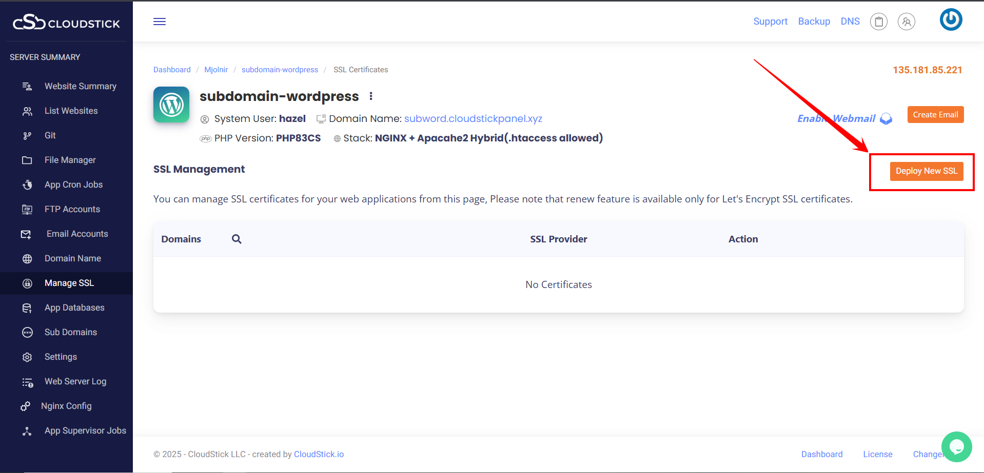 - Finally, click on “Deploy SSL” to complete the process. You’re all set!