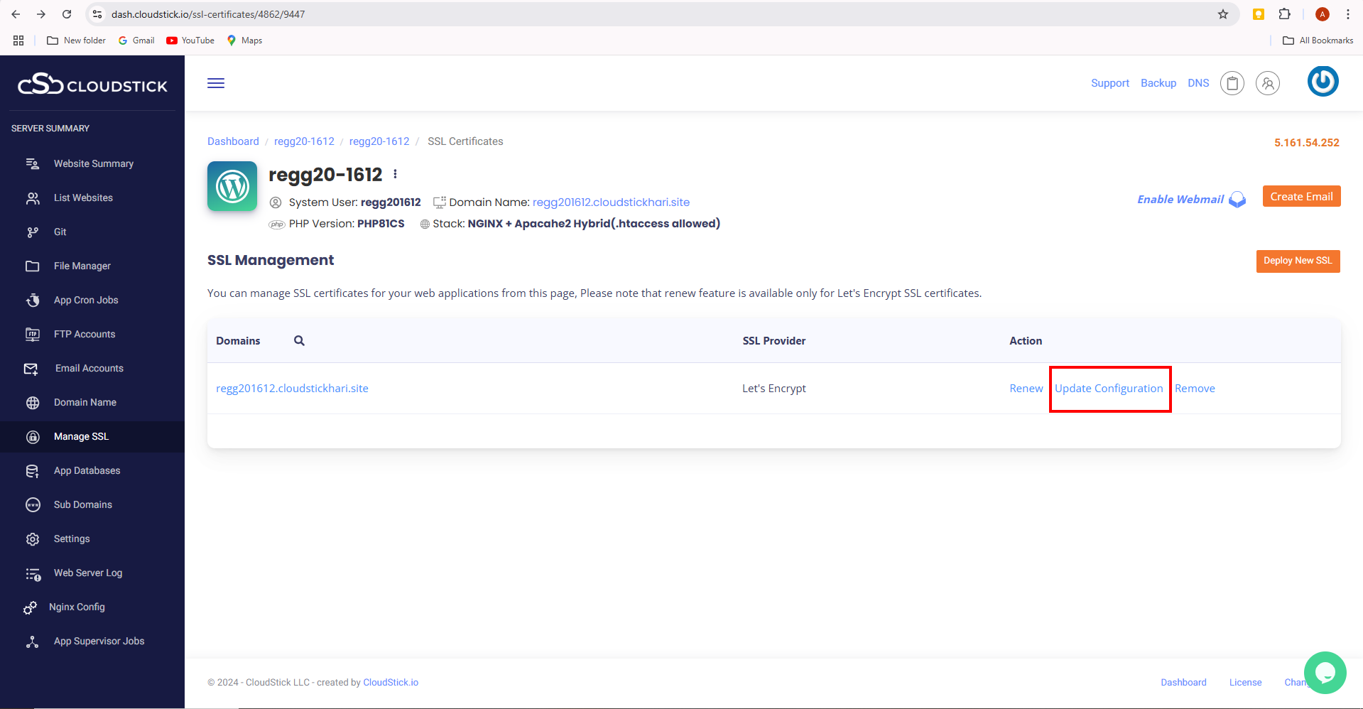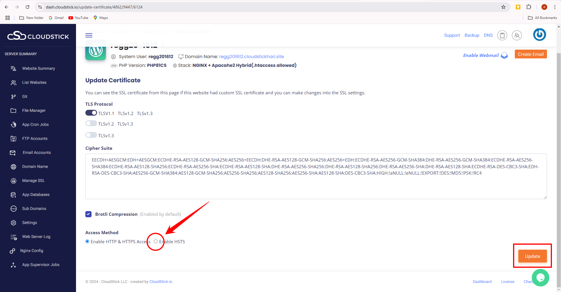 Enable ‘HSTS’  under ‘Access Methods’ and click ‘Update’.