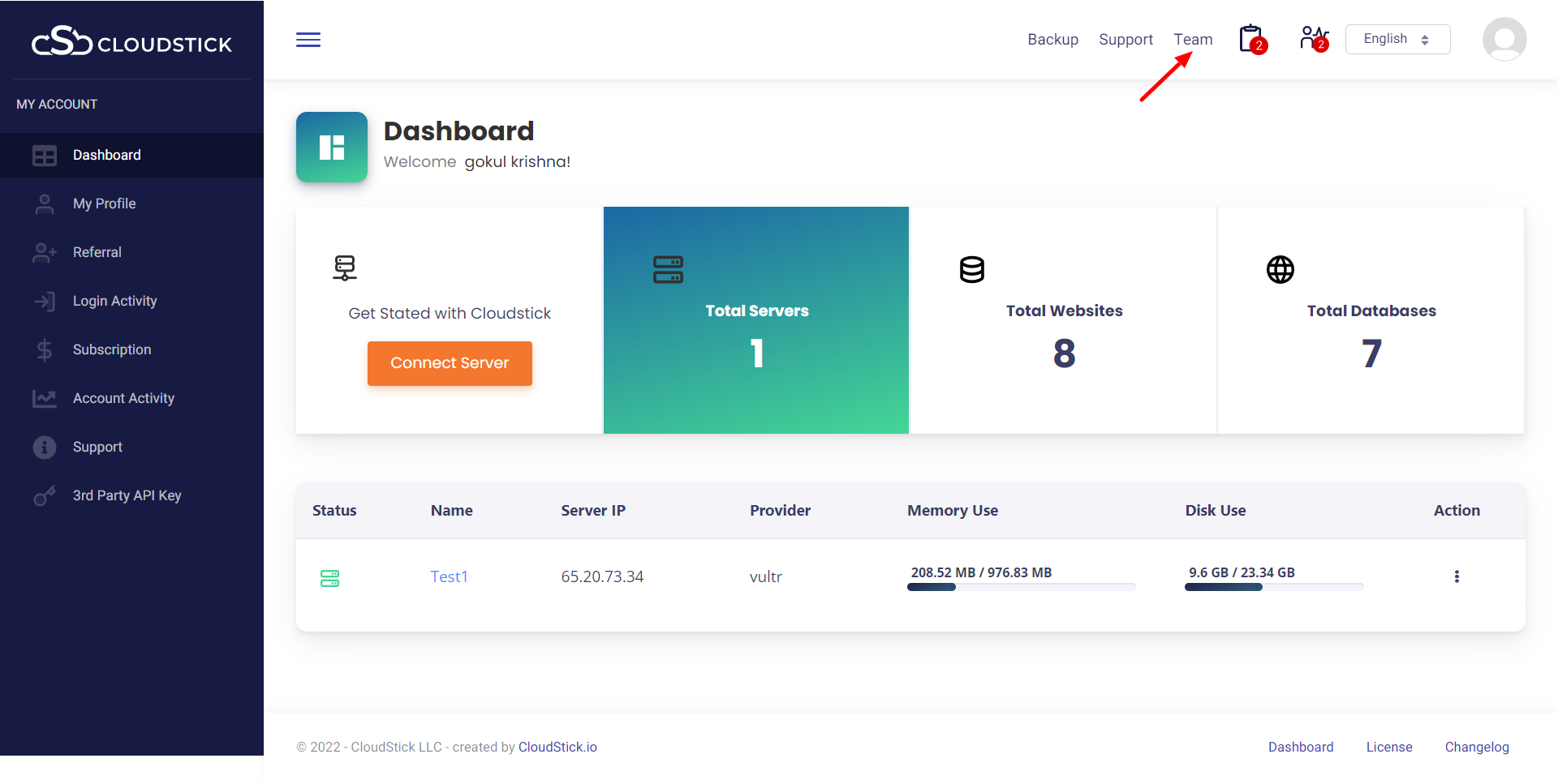 - Select the servers, that you would like to grant permission to manage, then click on the button Create a team. You are done.