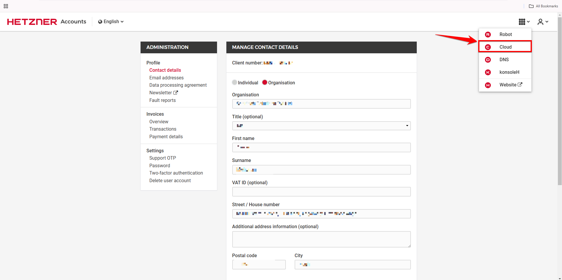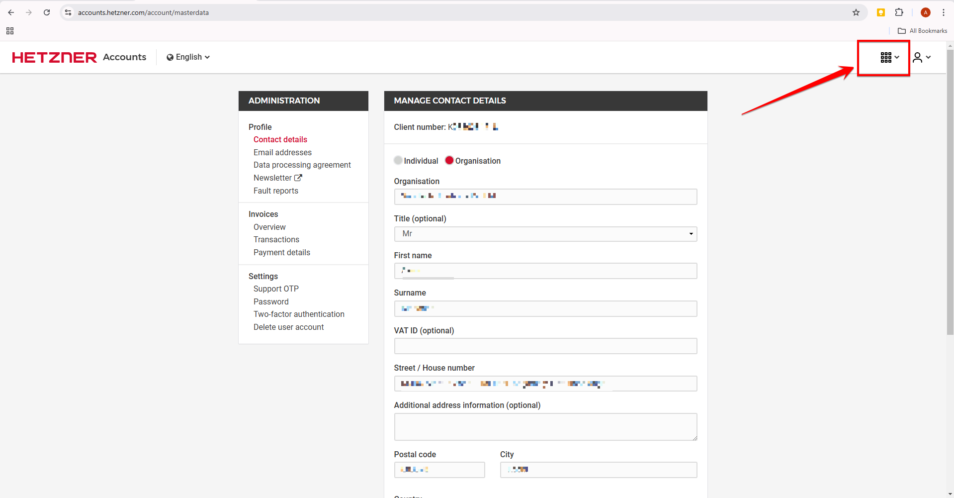 Login to your Hetzner account and click on ‘App Switcher’ menu on the top right corner of the dashboard.