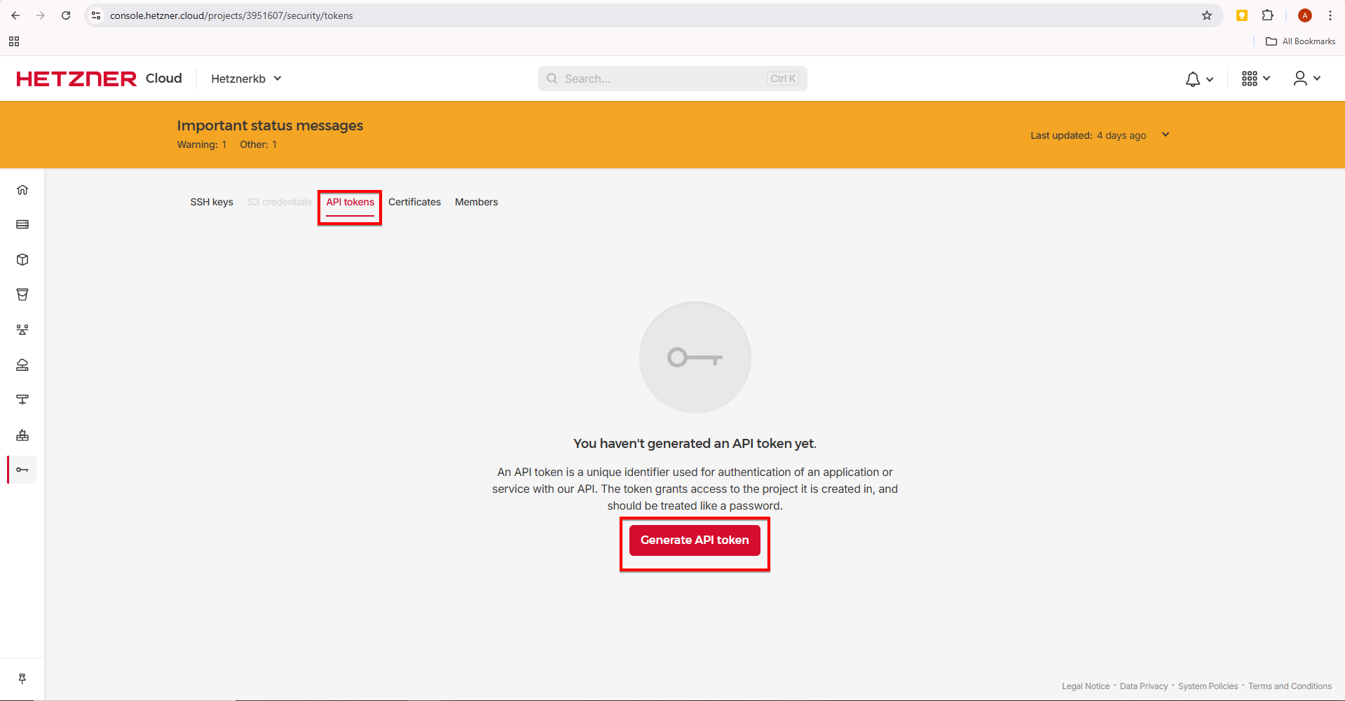 Click on the ‘API ‘ tokens and click ‘Generate API token’