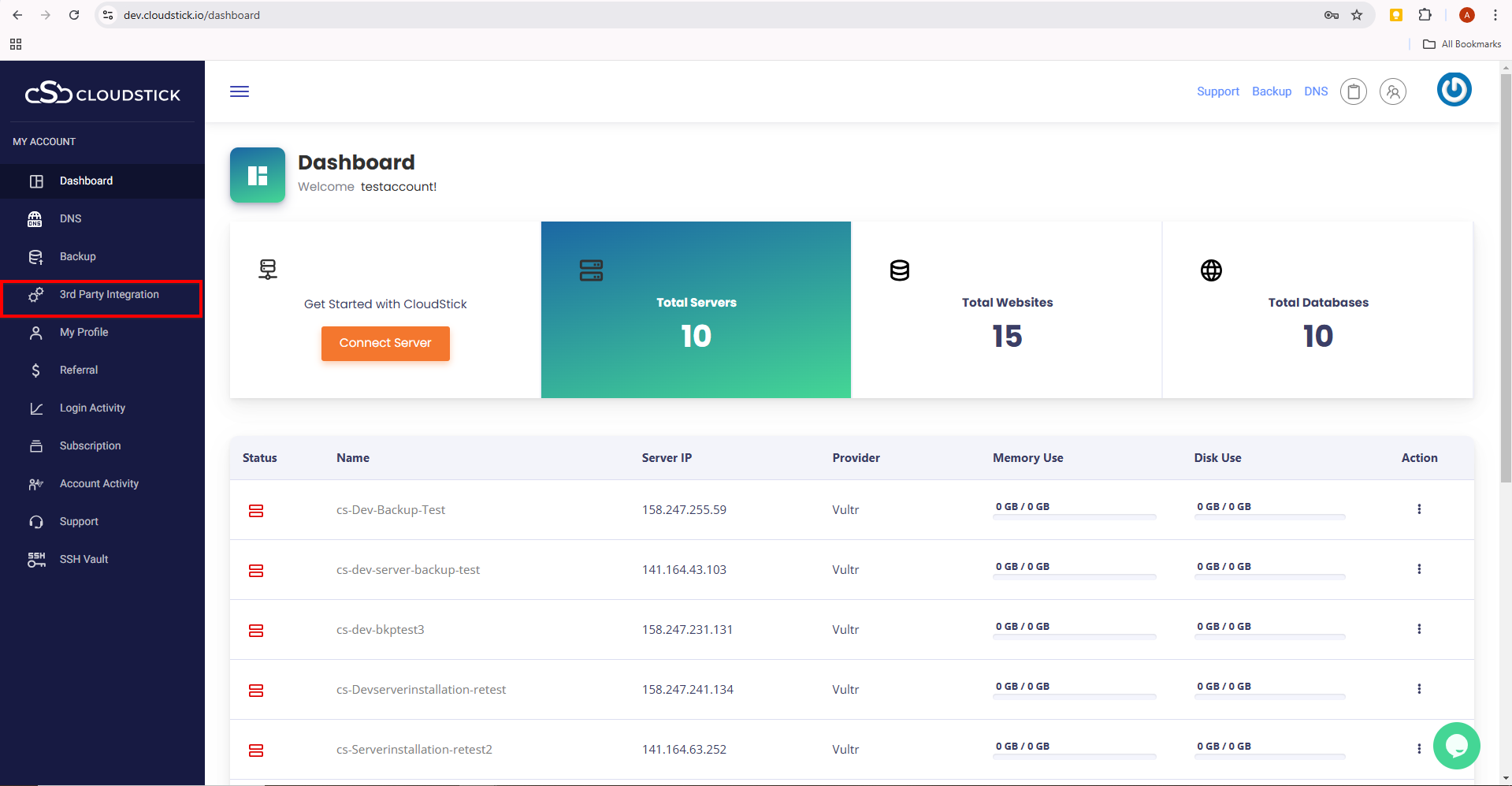 Now login to your Cloudstick account and click on the ‘3rd party Integrations’ in the Dashboard
