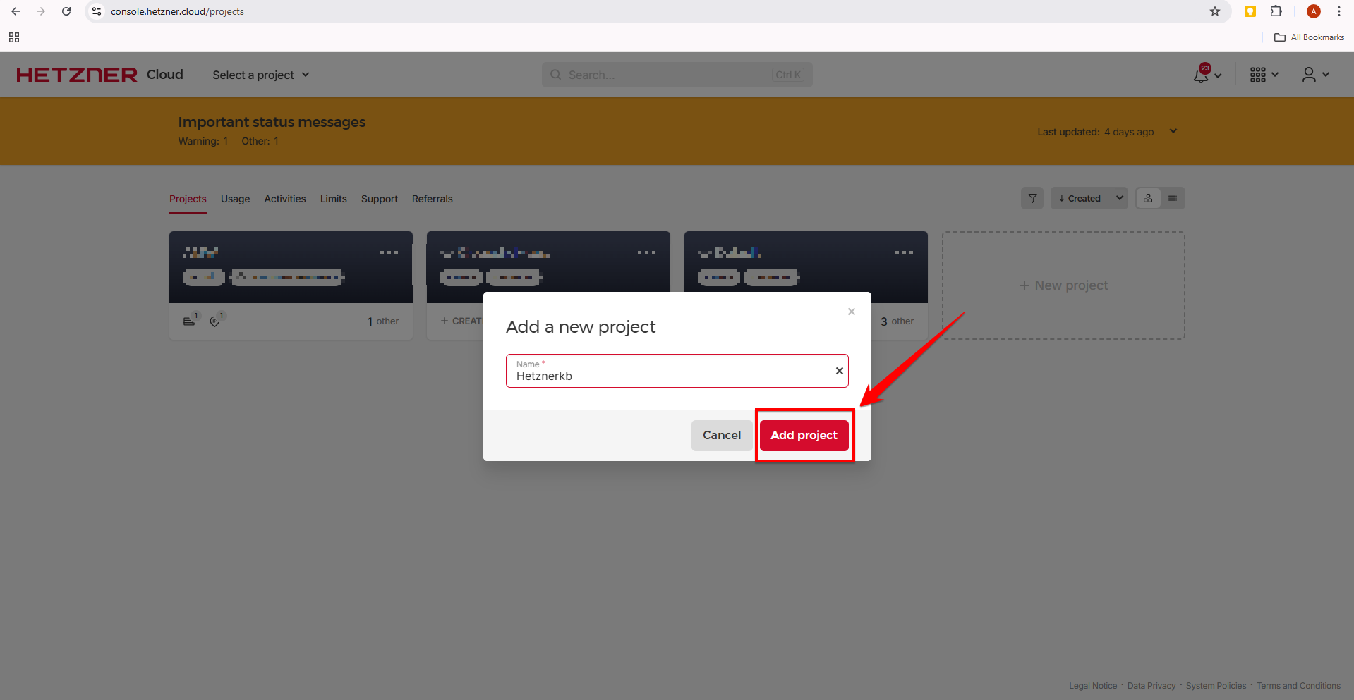 Follow these steps to seamlessly integrate your Hetzner account with Cloudstick: