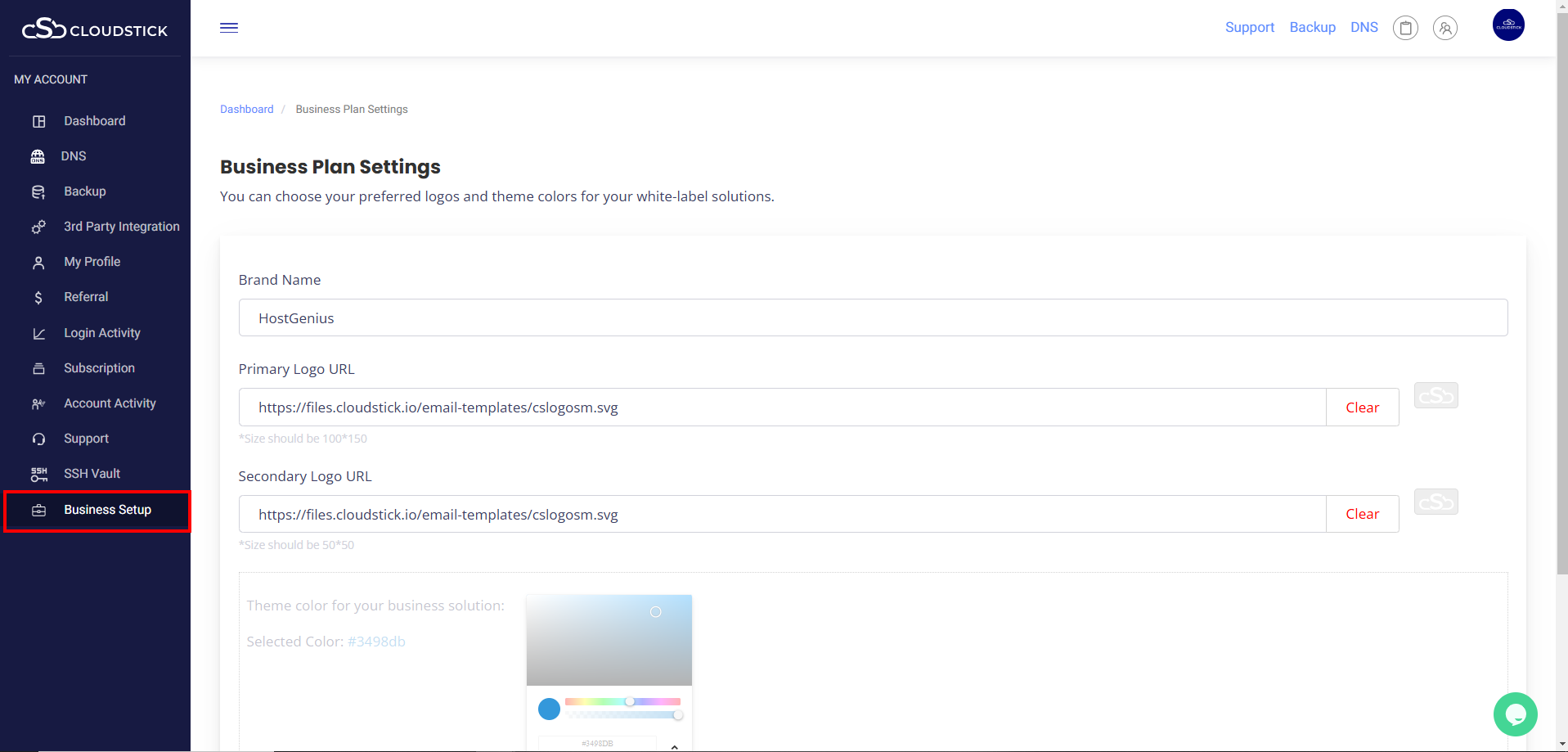 The Business Account setup in CloudStick empowers you to personalize your white-label solutions with ease. Elevate your brand identity by incorporating your custom logos, selecting theme colors that resonate with your brand’s essence, and creating a cohesive, professional look tailored to your business. This feature ensures your clients experience a seamless and branded interface, reflecting the unique character of your organization.