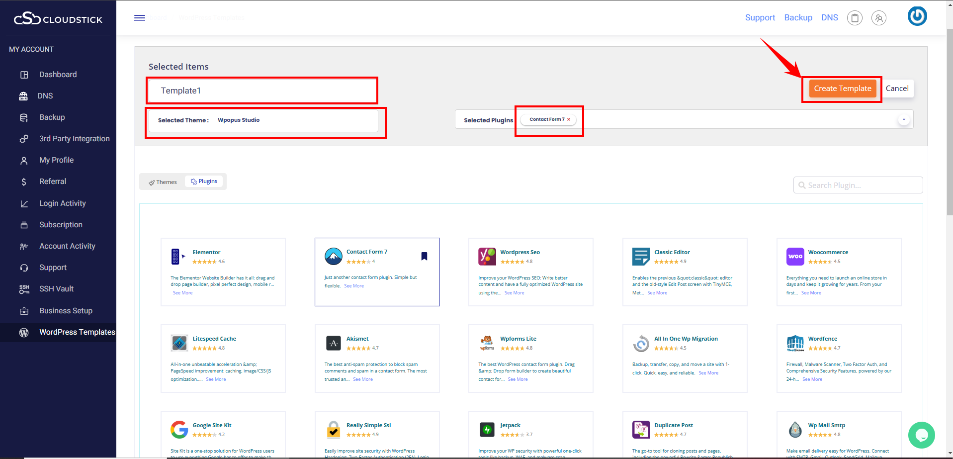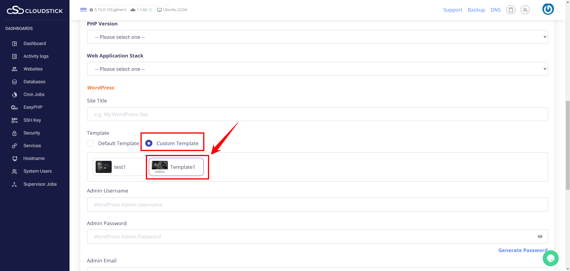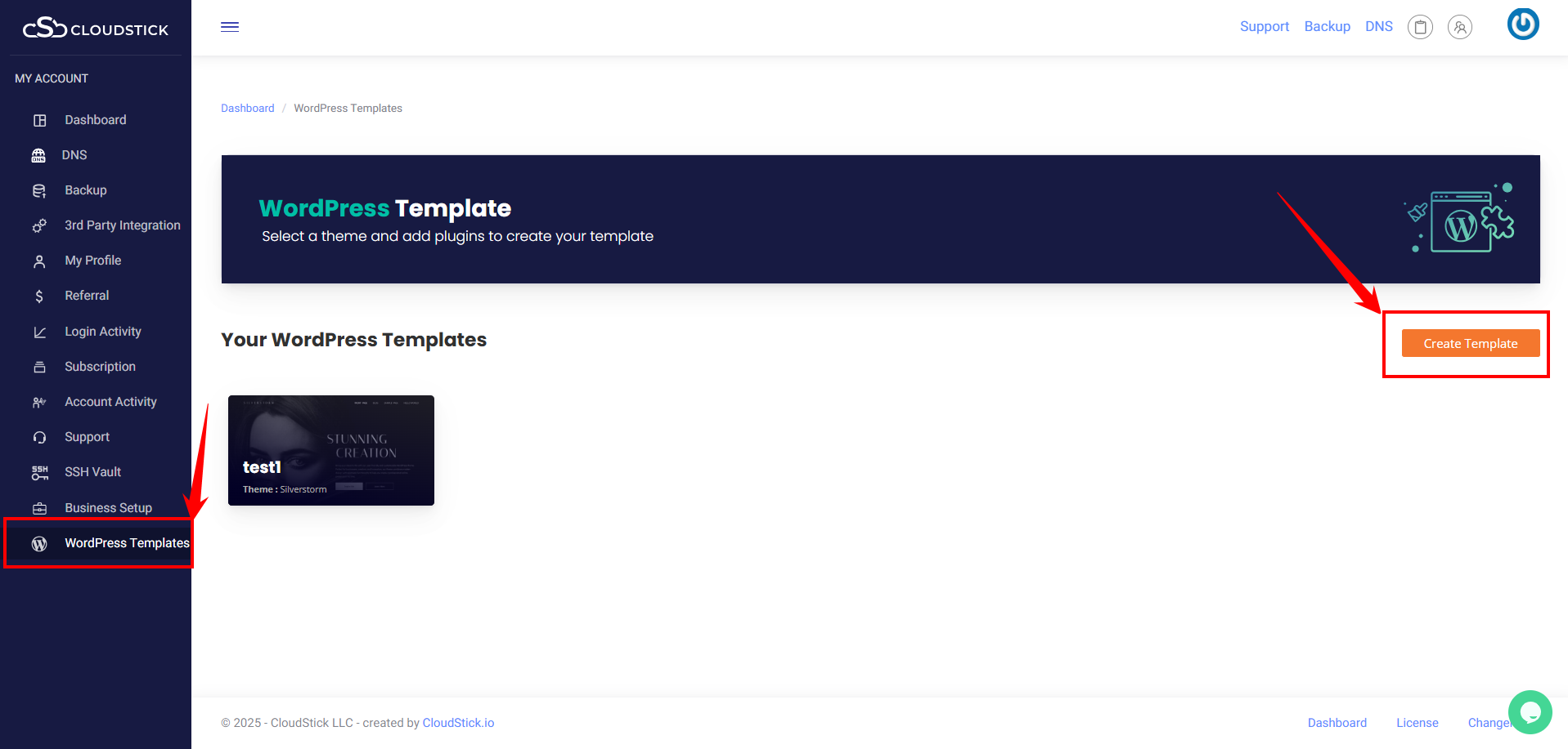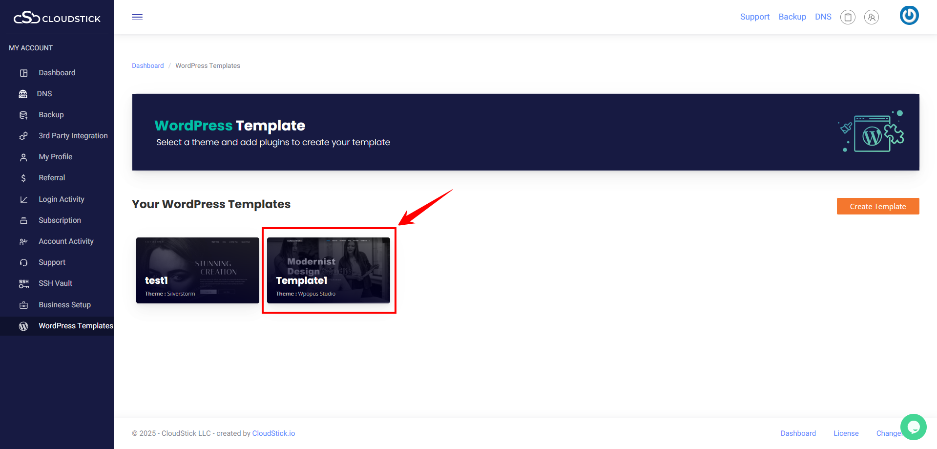 Login to you Cloudstick Dashboard and click on WordPress Templates and click on create Template.